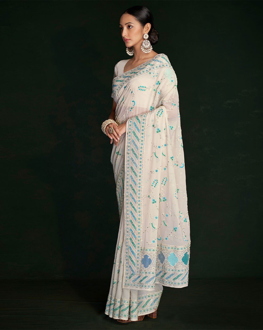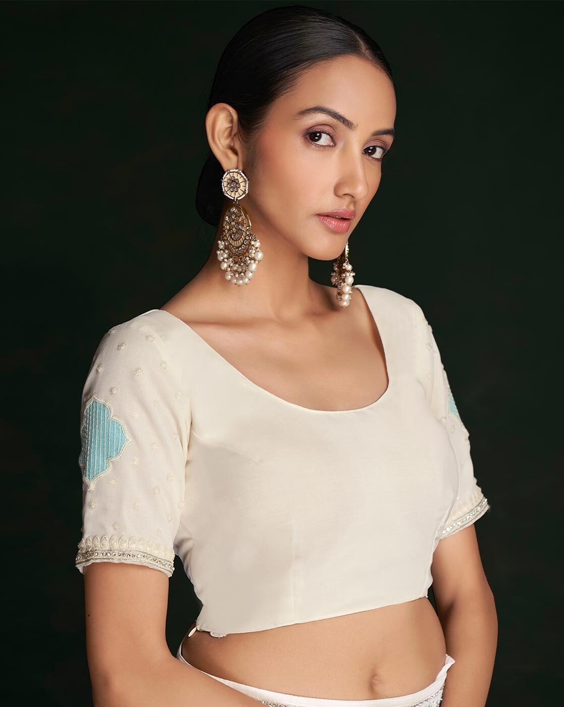 • The last image gives a detailed look of the blouse piece that comes with this saree (The model is wearing a blouse from our in-house wardrobe)