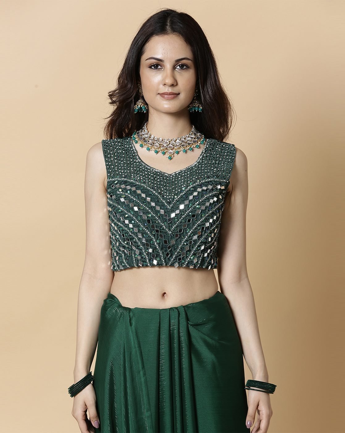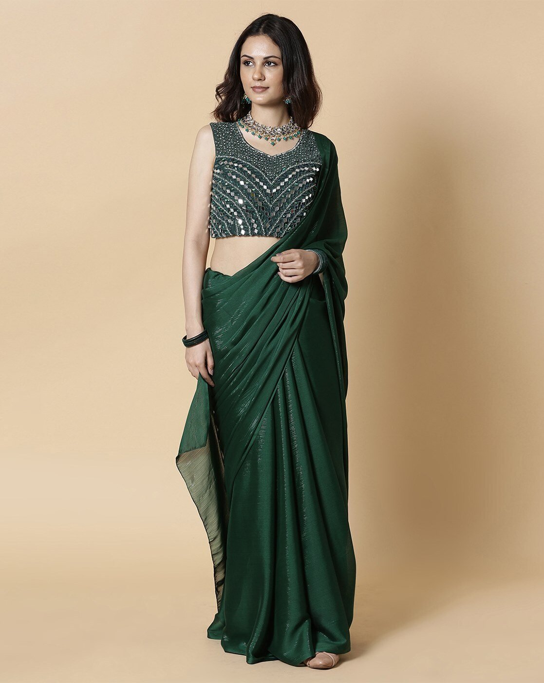 • The last image gives a detailed look of the blouse piece that comes with this saree (The model is wearing a blouse from our in-house wardrobe)